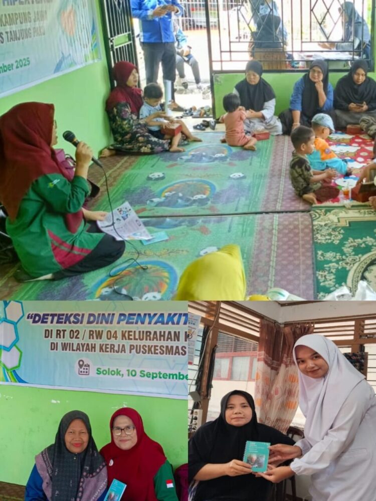 SOLOK, HARIANHALUAN.ID – Poltekkes Kemenkes Padang bekerja sama dengan Puskesmas Tanjung Paku Kota Solok melaksanakan kegiatan Pengabdian kepada Masyarakat (PKM) berupa deteksi dini penyakit hipertensi di RT 02 RW 04 Kelurahan Kampung Jawa, Kota Solok. Kegiatan ini berlangsung pada tanggal 7 Juli sampai dengan 12 Juli 2025.