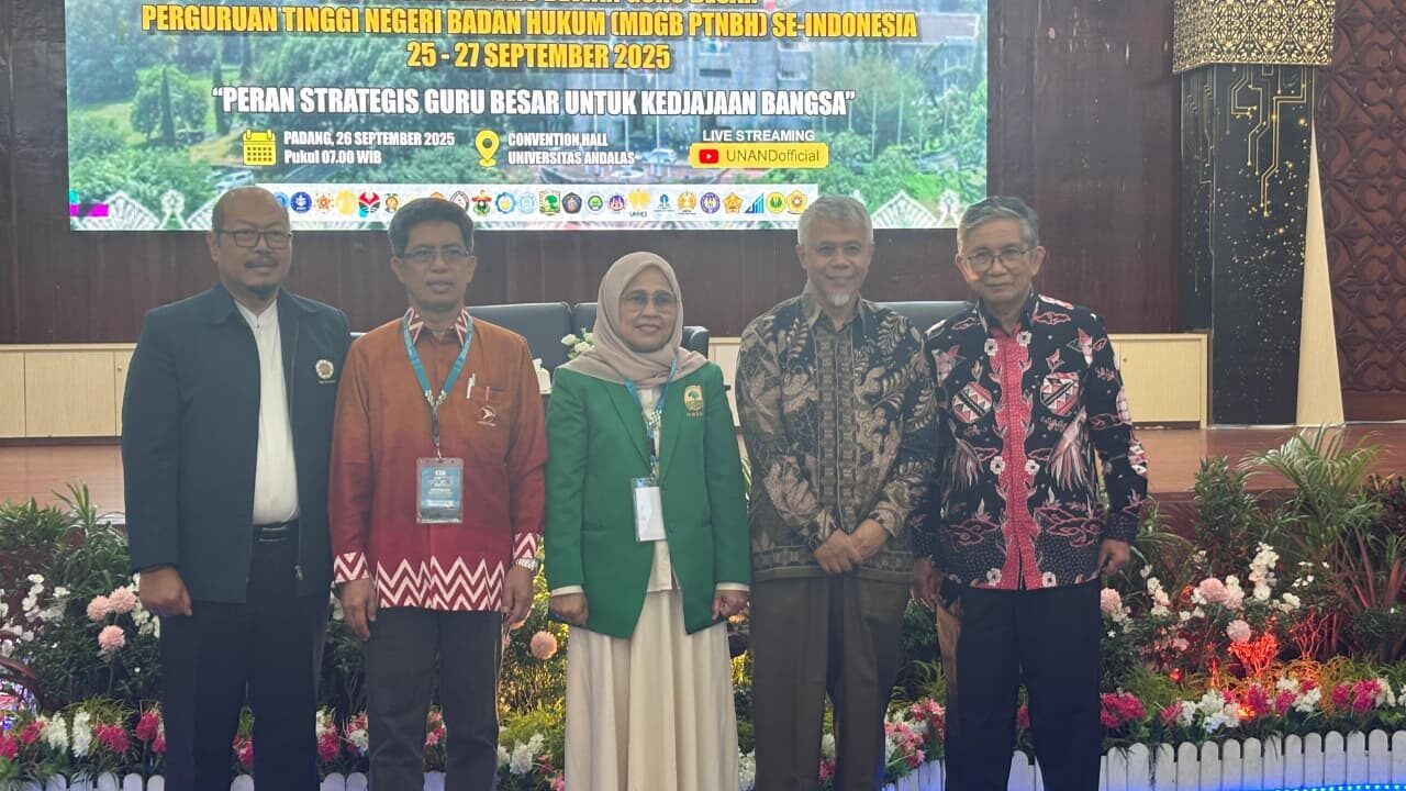 PADANG, HARIANHALUAN. ID — Universitas Andalas (UNAND) menjadi tuan rumah pertemuan akbar Majelis Dewan Guru Besar Perguruan Tinggi Negeri Berbadan Hukum (MDGB PTNBH) se-Indonesia yang berlangsung 25–27 September 2025 di Kampus Limau Manis.