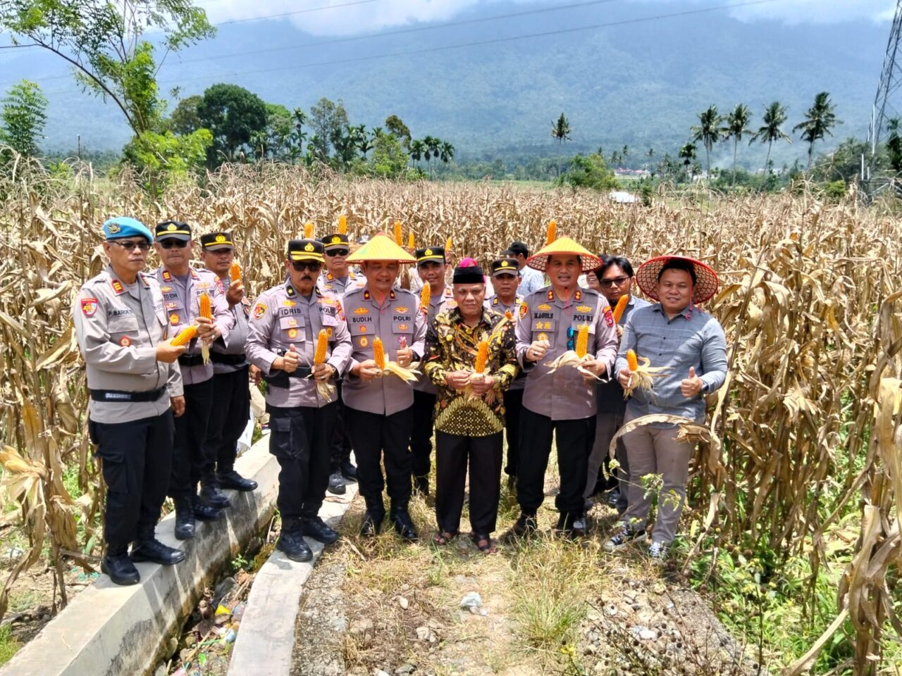 Setelah mengikuti zoom meeting, Kapolres beserta rombongan langsung turun ke lahan pertanian untuk melaksanakan panen jagung secara simbolis bersama para petani dan masyarakat setempat. Suasana penuh keakraban terlihat ketika jajaran kepolisian bahu-membahu bersama warga memetik hasil panen.