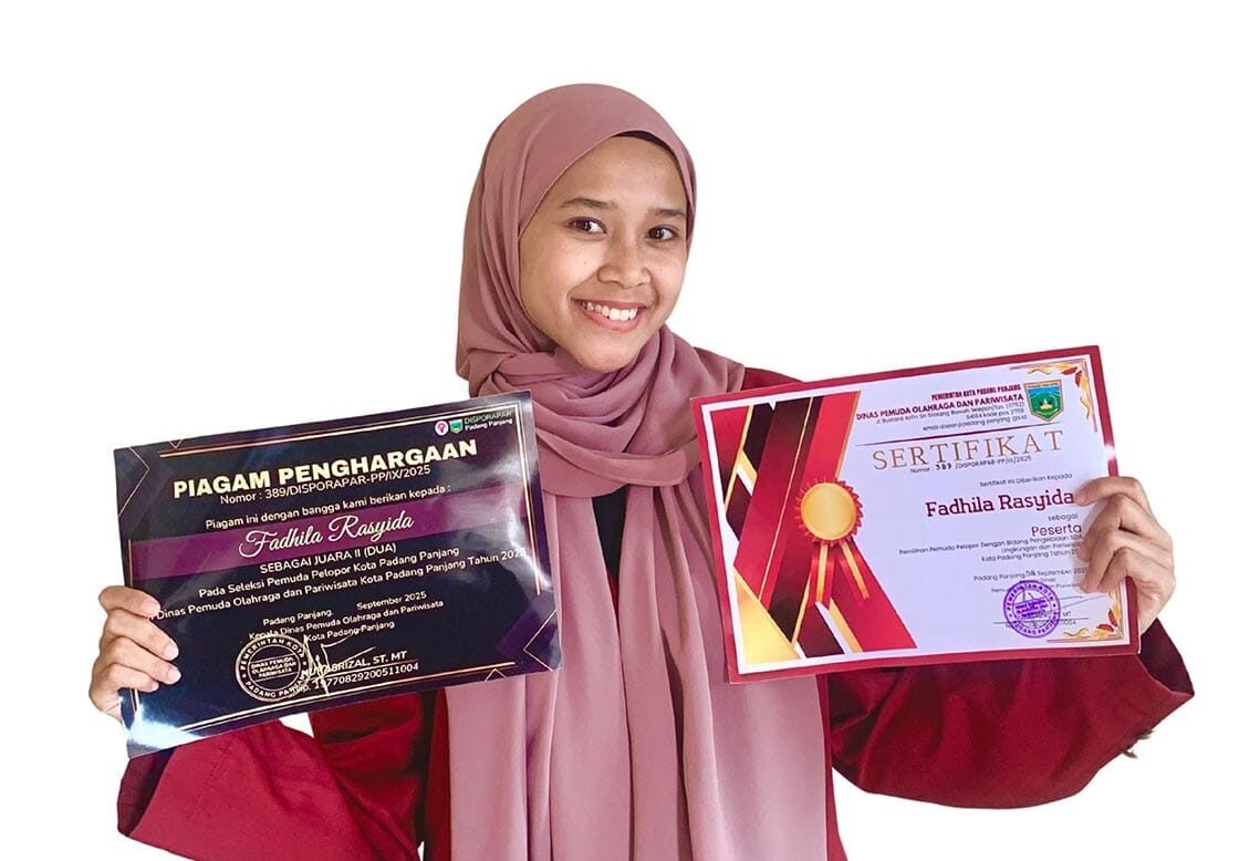 PADANG PANJANG, HARIANHALUAN.ID – Fadhila Rasyida, mahasiswi Program Studi Pendidikan Bahasa Inggris, Fakultas Keguruan dan Ilmu Pendidikan (FKIP) Universitas Muhammadiyah (UM) Sumatera Barat, berhasil menorehkan prestasi membanggakan dengan meraih juara 2 dalam ajang Seleksi Pemuda Pelopor Tingkat Kota Padang Panjang 2025.