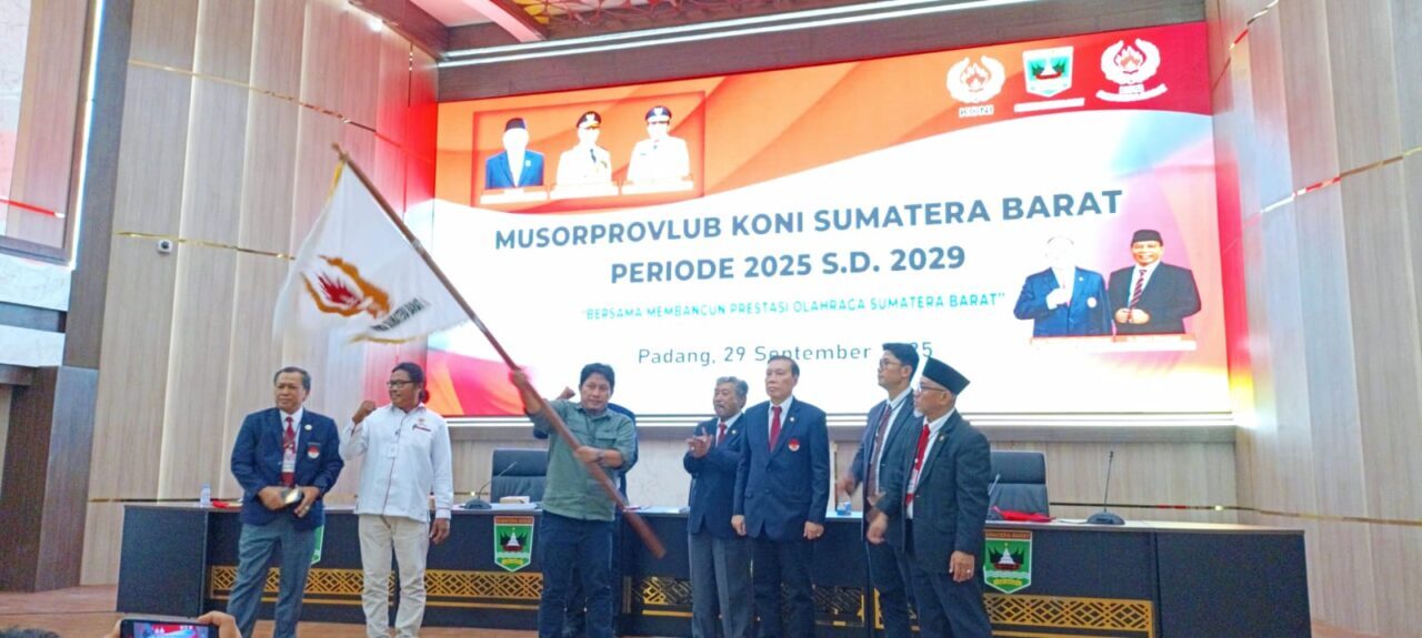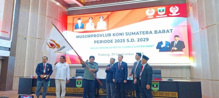 PADANG, HARIANHALUAN.ID — Pasangan Hamdanus Bagindo Rajo-Anandya Dipo Pratama resmi terpilih memimpin Komite Olahraga Nasional Indonesia (KONI) Sumatera Barat (Sumbar) periode 2025-2029 usai menang telak dalam hasil voting suara pada Musyawarah Olahraga Provinsi Luarbiasa (Musorprovlub) KONI Sumbar di Aula Kantor Gubernur, Senin malam (29/9/2025).