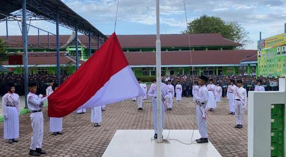 HARIANHALUAN.ID- Upacara bendera dalam rangka Hari Kesaktian Pancasila di Madrasah Tsanawiyah Negeri (MTsN) 6 Padang, Rabu (1/10/25) berlangsung khidmat.