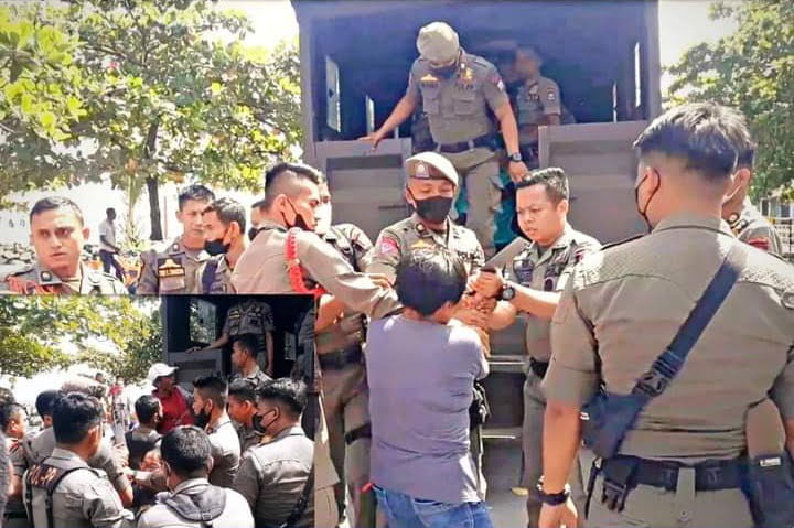 Tindakan Persuasif secara Humanis terus dilakukan oleh petugas di lapangan, namun, salah seorang oknum PKL ini, malahan menyerang petugas, dengan sebilah parang hingga ke ke mobil petugas.