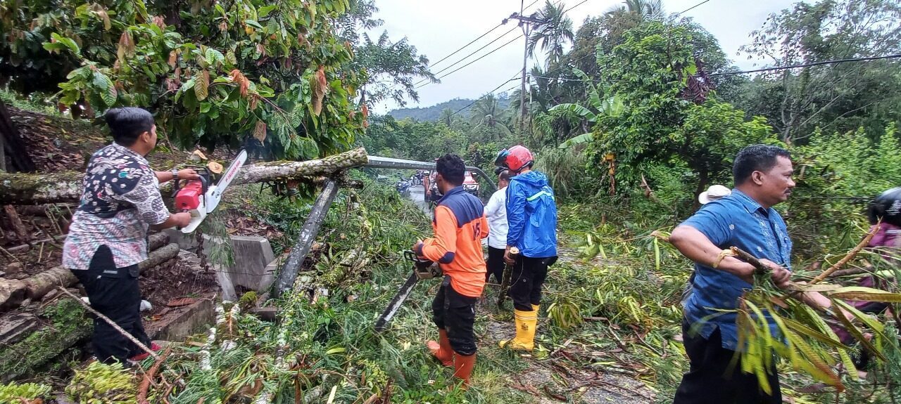 Camat Barangin, Irwan Junaidi, S.E, bersama jajaran kecamatan, Kepala Desa Santur Sri Adianto, anggota Polres Sawahlunto serta Tim BPBD Sawahlunto turun langsung ke lokasi untuk membantu penanganan darurat, termasuk membersihkan material pohon tumbang agar akses lalu lintas kembali terbuka.