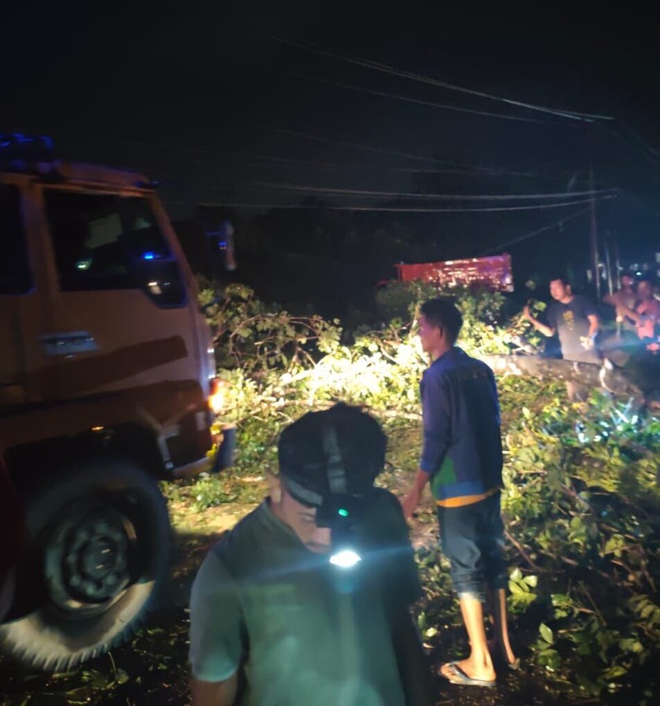Kapolsek Kamang Baru, AKP Syafrinaldi memimpin langsung upaya penanganan darurat bersama personel Polsek dan anggota Pos Lantas Kiliran Jao dibantu warga setempat, melakukan evakuasi dan pembersihan pohon tumbang dengan menggunakan alat mesin chainsaw dan parang.