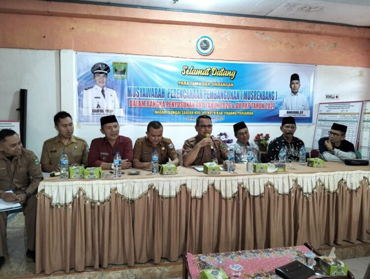 SUNGAI SARIAK, HARIANHALUAN.ID – Pemerintah Nagari Sungai Sariak menggelar Musyawarah Perencanaan Pembangunan (Musrenbang) dalam rangka penyusunan Rencana Kerja Pemerintah (RKP) Tahun 2026, serta Daftar Usulan RKP (DU RKP) Tahun 2027.