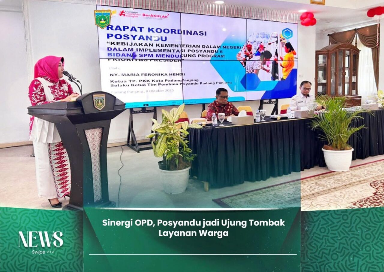 “Pemerintah Kota bersama seluruh OPD terkait diminta untuk menjadikan Posyandu sebagai ujung tombak pelayanan masyarakat,” sebut Ketua TP Posyandu Kota Padang Panjang, Maria Feronika Hendri dalam Rapat Koordinasi Posyandu di Pendopo Rumah Dinas Wako, Rabu (8/10/2025).