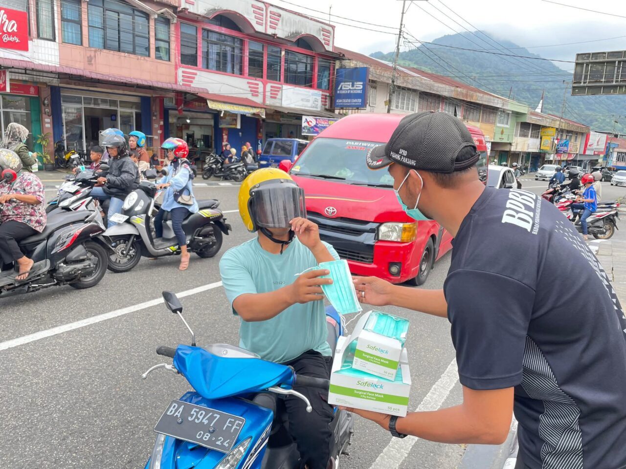 Langkah ini dilakukan menyusul erupsi Gunung Marapi yang terjadi pukul 12.18 WIB selama 1 menit 34 detik, dengan kolom abu mencapai ketinggian sekitar 1,5 kilometer dari puncak. Pembagian masker difokuskan di dua lokasi keramaian, yakni Simpang PDAM dan kawasan Pasar Pusat Padang Panjang.