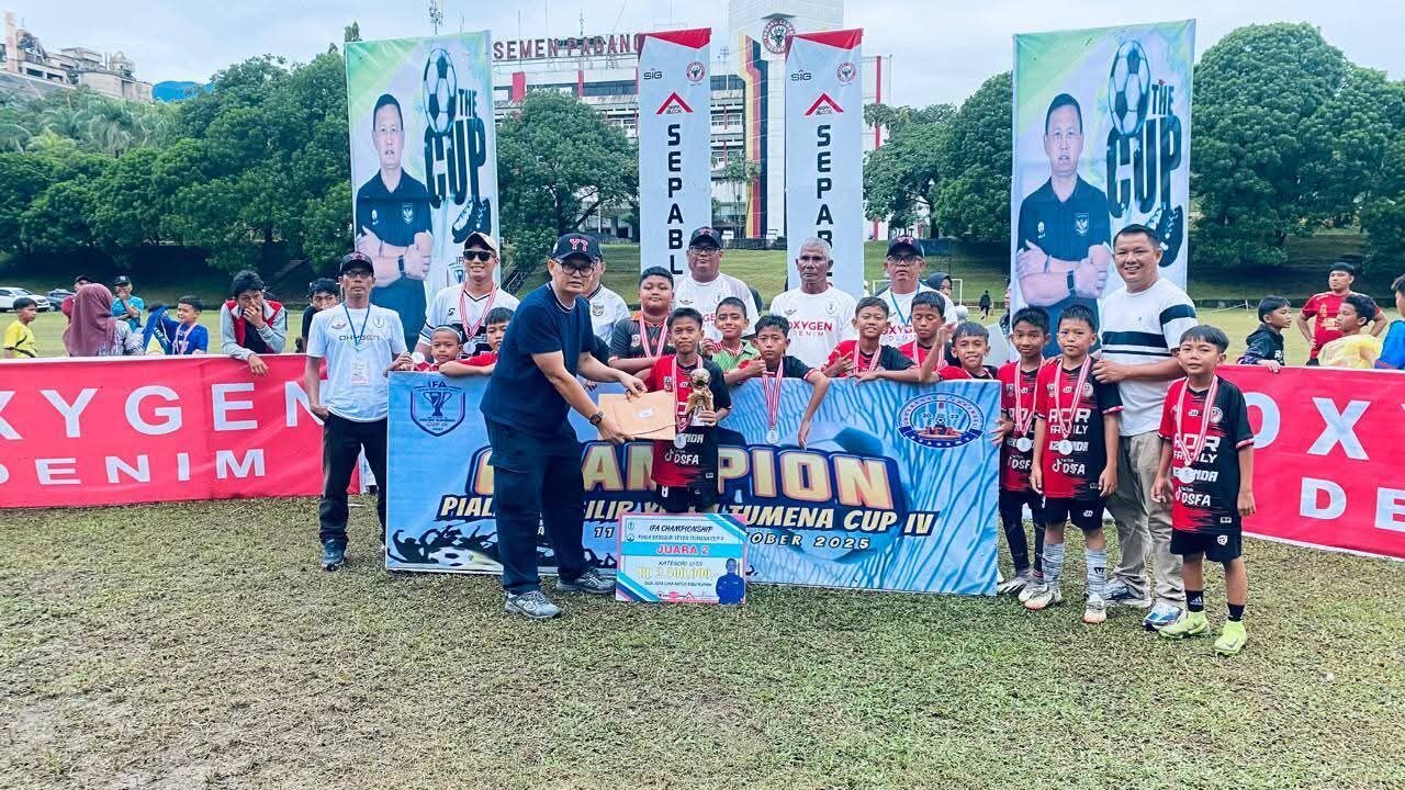 DHARMASRAYA, HARIANHALUAN.ID- Sekolah Sepak Bola (SSB) DSFA Dharmasraya berhasil meraih posisi runner-up kategori usia 10 tahun (KU-10) pada turnamen Yeyen Tumena Cup IV yang berlangsung di Lapangan Indarung, Padang, 11–12 Oktober 2025.