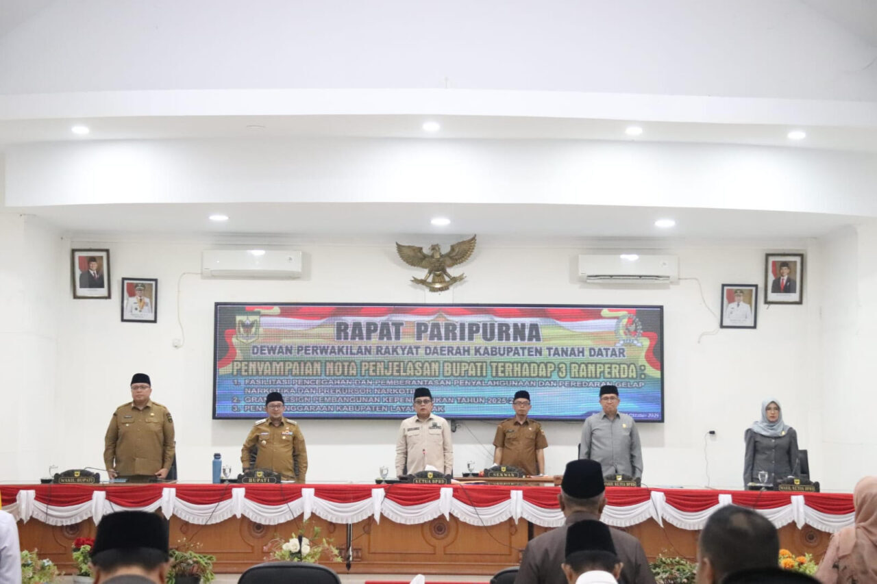 TANAH DATAR, HARIANHALUAN,ID – Dewan Perwakilan Rakyat Daerah (DPRD) Tanah Datar menyelenggarakan rapat paripurna penyampaian nota penjelasan bupati tentang Ranperda Narkoba, Grand Design Kependudukan, dan Kabupaten Layak Anak di aula DPRD Pagaruyung, Senin (13/10).