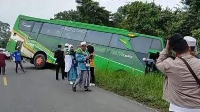 “Bus yang membawa rombongan JCH asal Kabupaten Merangin tergelincir di Kecamatan Batin XXIV, Kabupaten Merangin. Kami sudah kirimkan bus untuk menjemput jamaah di sana,” kata Kepala Kantor Wilayah Kementerian Agama Provinsi Jambi Zoztafia di Jambi, seperti dikutip dari Antara Minggu (26/6) seperti diberitakan CNNIndonesia.com.