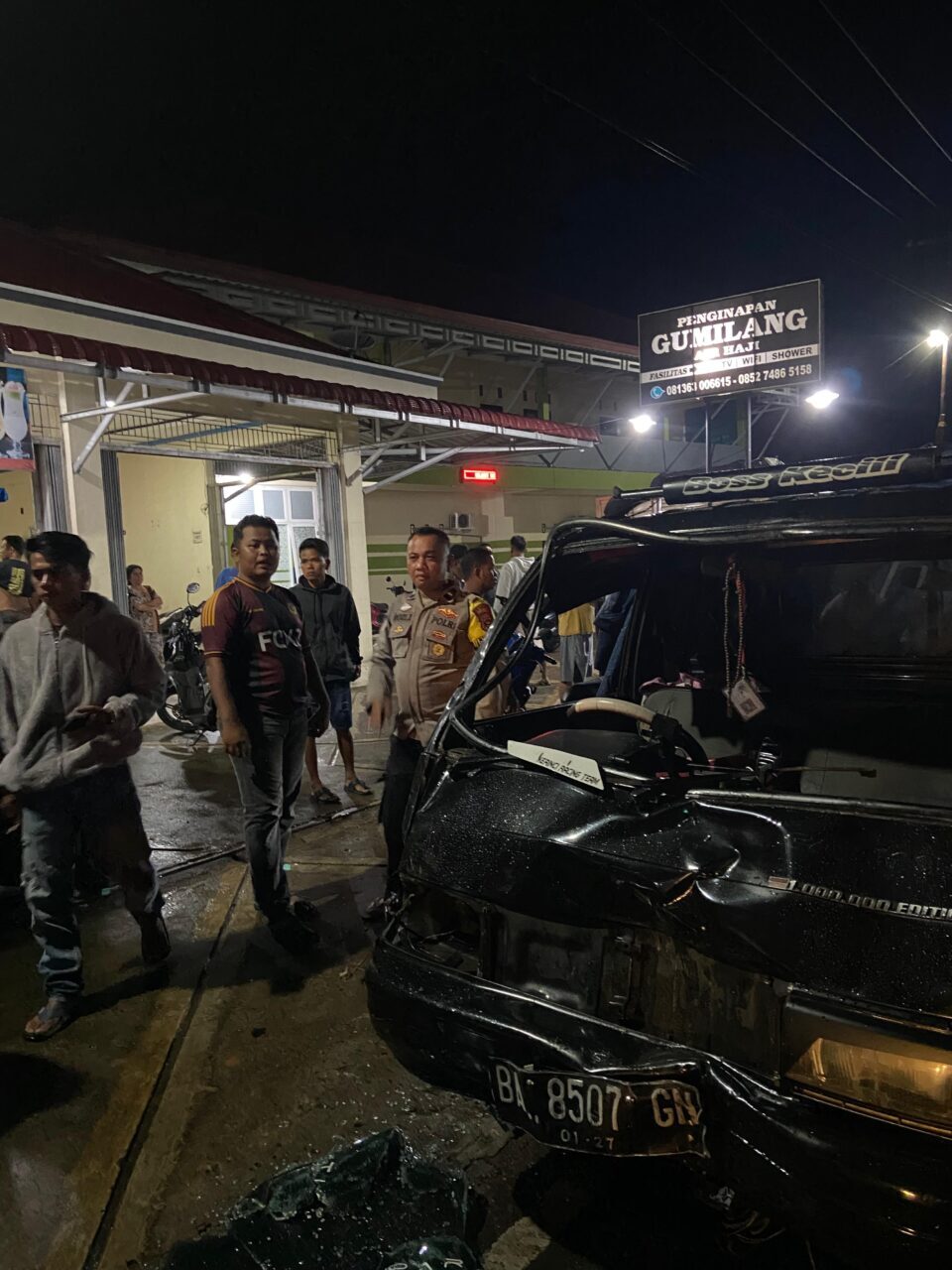Akibat kehilangan kendali, mobil tersebut kemudian bertabrakan dengan sepeda motor Yamaha Mio GT yang datang dari arah berlawanan. Benturan keras membuat pengendara Nofri Yendri terpental ke samping jalan, sementara penumpangnya, Aziz, terpental dan membentur kaca depan mobil pick up.