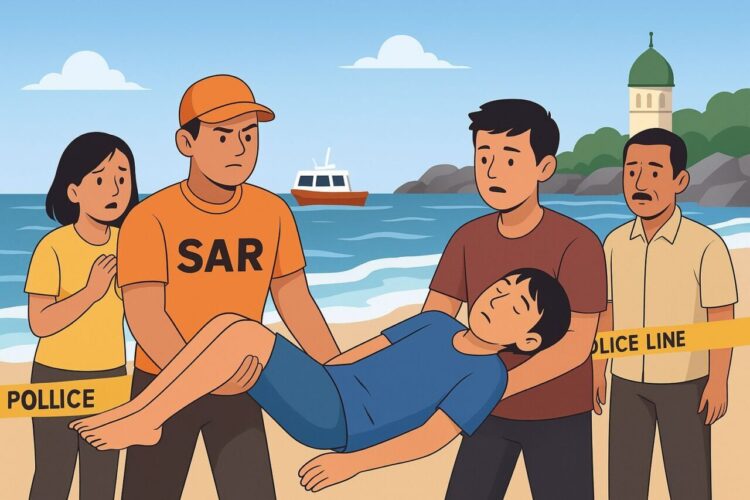 Anggota Tim SAR Balawista, Taufik, menyampaikan bahwa korban pertama kali terlihat mengapung di sekitar batu grib Pantai Padang.