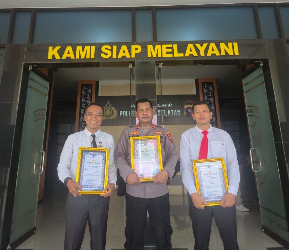 PESISIR SELATAN, HARIANHALUAN.ID— Dedikasi dan kerja cepat jajaran Polsek Sutera dalam mengungkap kasus pencurian kendaraan bermotor (curanmor) di wilayah hukumnya berbuah apresiasi. Kapolsek Sutera, Iptu Manatap Manik, bersama Kanit Intel Aiptu Jondafrinaldo dan Kanit Reskrim Bripka Tomi Wijaya menerima penghargaan dari Kapolres Pesisir Selatan, AKBP Derry Indra, Selasa pagi (21/10/2025).
