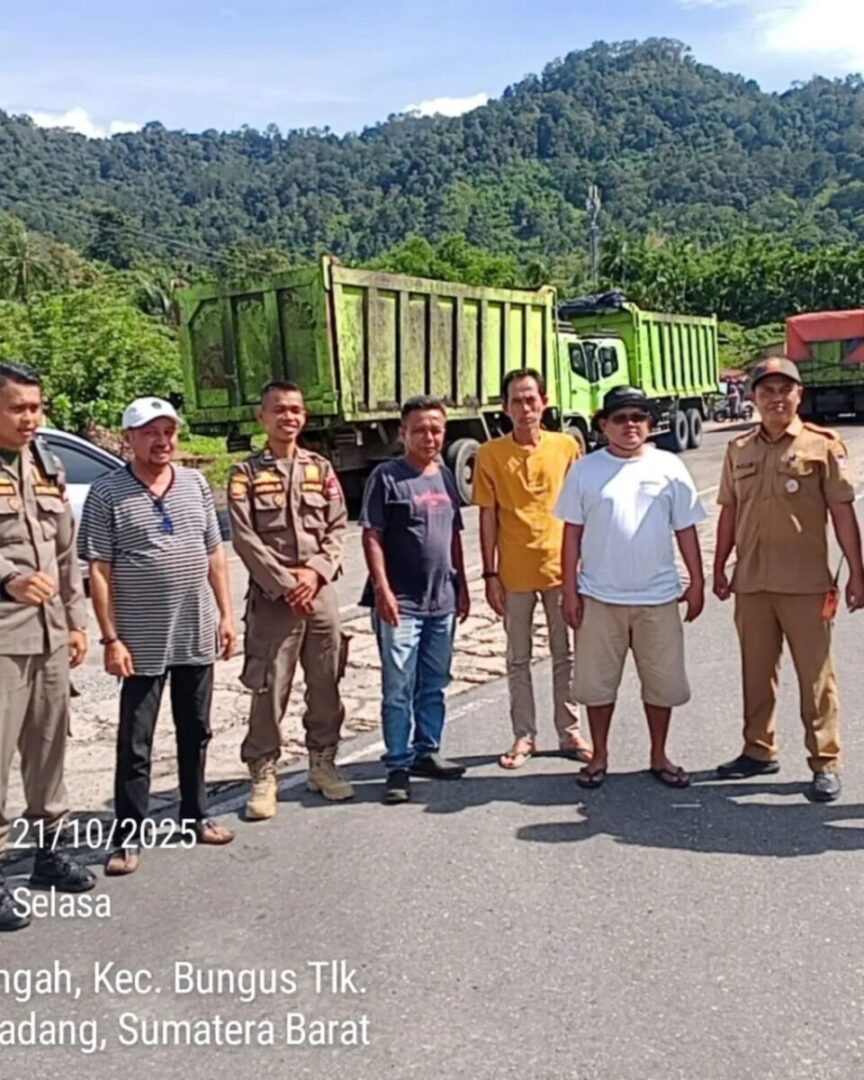 PADANG, HARIANHALUAN.ID- Anggota Satpol PP Bawah Kendali Operasi Kecamatan bungus bersama Kasi Trantib Kelurahan Teluk Kabung tengah sosialisasi tentang PKJR pemandu jalan wisatawan menuju Mandeh dan PLTU Teluk Sirih, Selasa (21/10/25).