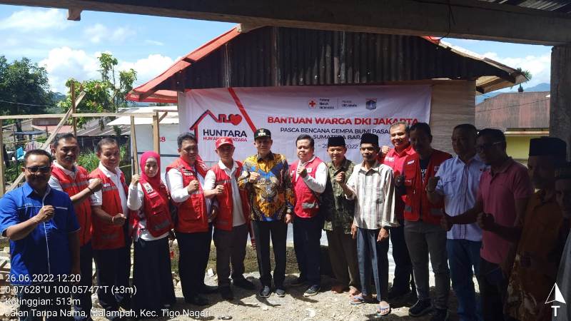 HARIANHALUAN.ID – Peduli korban gempa Pasaman, rombongan PMI se-DKI Jakarta bersama Wakil Bupati Pasaman menyerahkan bantuan 40 unit huntara dan renovasi masjid di Nagari Malampah, Kecamatan Tigo Nagari, Kabupaten Pasaman, Sumatra Barat (Sumbar), Minggu (26/6).