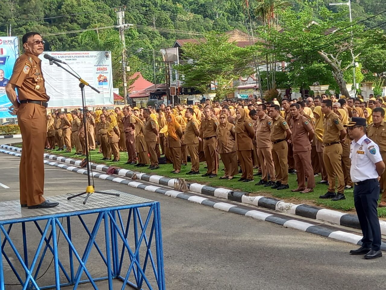 Penegasan itu disampaikan Hendrajoni saat memimpin apel gabungan di halaman kantor bupati, Senin (27/10/2025).