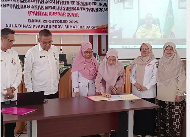 PADANG, HARIANHALUAN.ID – Pemerintah Provinsi Sumatera Barat melalui DP3AP2KB meluncurkan Aksi PANTAU SUMBAR 2045 (Rapat Koordinasi dan Kerja Sama Lintas Sektor dalam Rangka Penguatan Aksi Nyata Terpadu Perlindungan Perempuan dan Anak Menuju Sumbar Tangguh), Rabu, (22/10/2025) bertempat di Aula DP3AP2KB Prov. Sumbar.