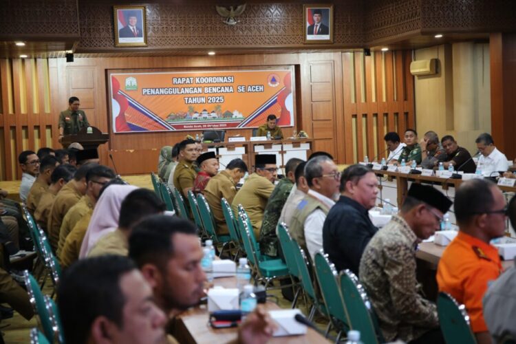 BANDA ACEH, HARIANHALUAN.ID – Kepala Badan Nasional Penanggulangan Bencana (BNPB) Letjen TNI Dr. Suharyanto, S.Sos., M.M., memimpin Rapat Koordinasi (Rakor) penanganan bencana se-Provinsi Aceh yang digelar di Kantor Gubernur Aceh, Provinsi Aceh, pada Selasa (28/10). Rakor yang dihadiri Bupati dan Walikota se Provinsi Aceh ini membahas upaya penanganan bencana yang terjadi dan langkah upaya mitigasi kedepan yang akan dilakukan.