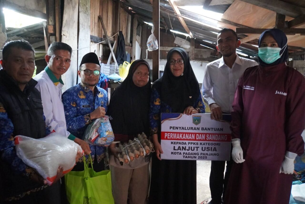 PADANG PANJANG, HARIANHALUAN.ID — Wakil Wali Kota, Allex Saputra salurkan bantuan permakanan dan sandang bagi Penerima Pelayanan Kesejahteraan Sosial (PPKS) kategori lanjut usia (lansia) dan penyandang disabilitas di Kelurahan Pasar Usang dan Kelurahan Kampung Manggis, Selasa (28/10/2025).