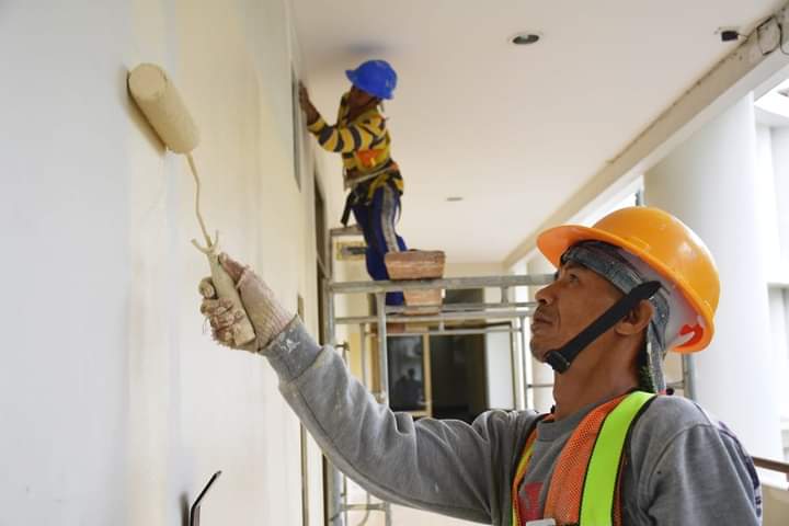 Saat ini, sepuluh pekerja tuna rungu itu bekerja hanya mengecat gedung tiga lantai secara keseluruhan. Sisi bagian kanan belakang gedung sudah selesai diwarnai. Pekerja kini tengah menyelesaikan sisi bagian depan dan dalam gedung.