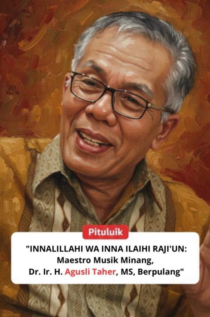 PADANG, HARIANHALUAN.ID — Kabar duka menyelimuti dunia musik Minang dengan berpulangnya Dr. Ir. H. Agusli Taher, MS, atau yang lebih dikenal sebagai Agus Taher, pada Selasa, 28 Oktober 2025, pukul 8.30 pagi.