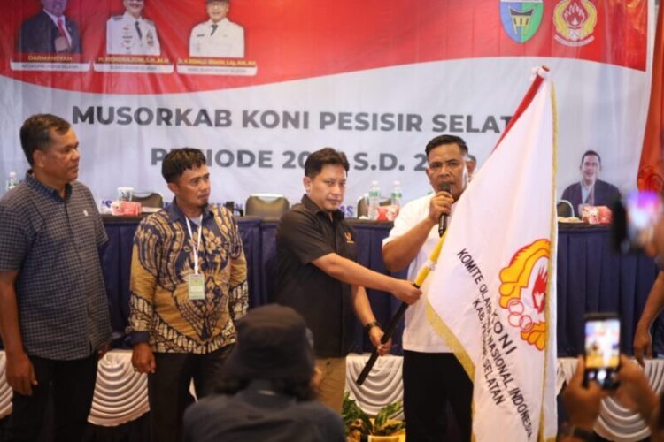 PESISIR SELATAN, HARIANHALUAN.ID- Musyawarah Olahraga Kabupaten (Musorkab) Komite Olahraga Nasional Indonesia (KONI) Kabupaten Pesisir Selatan (Pessel) resmi menetapkan M. Adli sebagai Ketua Umum KONI Pessel periode 2025–2029, Sabtu (1/11/2025).