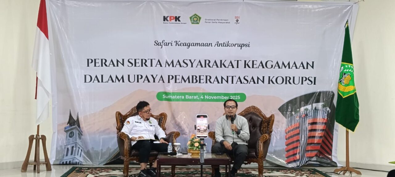 PADANG, HARIANHALUAN.ID — Komisi Pemberantasan Korupsi (KPK) Republik Indonesia bersama Kantor Wilayah Kementerian Agama Sumatera Barat (Sumbar) menggelar workshop Safari Keagamaan Antikorupsi dengan tema Peran Serta Masyarakat Keagamaan dalam Pemberantasan Korupsi di Aula Kanwil Kemenag Sumbar, Selasa (4/11/2025).