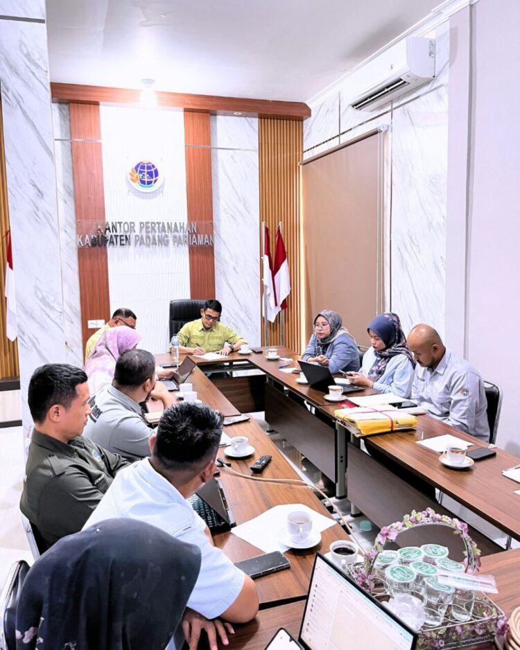 PADANG PARIAMAN, HARIANHALUAN.ID – Kantor Pertanahan (Kantah) Kabupaten Padang Pariaman melaksanakan kegiatan Monitoring dan Evaluasi (Monev) Mingguan yang diikuti seluruh pejabat struktural, koordinator kegiatan, serta tim pelaksana dari setiap seksi di aula kantor setempat, Selasa (4/11/2025).