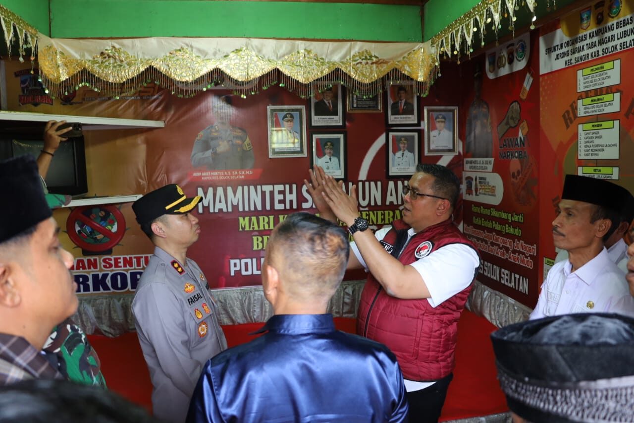 Kombes Pol Wedy Mahadi menyampaikan apresiasi atas kerja sama antara aparat dan masyarakat di Solok Selatan. Menurutnya, pembentukan Kampung Bebas Narkoba merupakan bagian penting dari program Astacita Presiden yang menempatkan pemberantasan narkoba sebagai prioritas nasional.