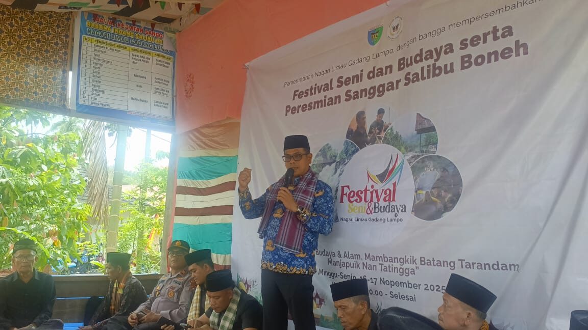 PESISIR SELATAN, HARIANHALUAN.ID – Wakil Bupati Pesisir Selatan, Risnaldi Ibrahim, secara resmi menutup Festival Seni dan Budaya sekaligus meresmikan Sanggar Salibu Boneh di Nagari Limau Gadang Lumpo, Kecamatan IV Jurai, Senin (17/11/2025).
