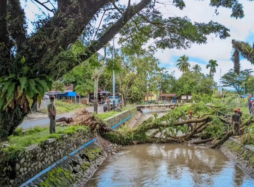 PADANG, HARIANHALUAN.ID – Angin kencang yang melanda sejumlah kawasan di Kota Padang pada, Senin (17/11/2025) mengakibatkan sebuah pohon Trambesi berukuran besar tumbang di Jln. Irigasi, Kelurahan Kepala Koto, Kecamatan Pauh.