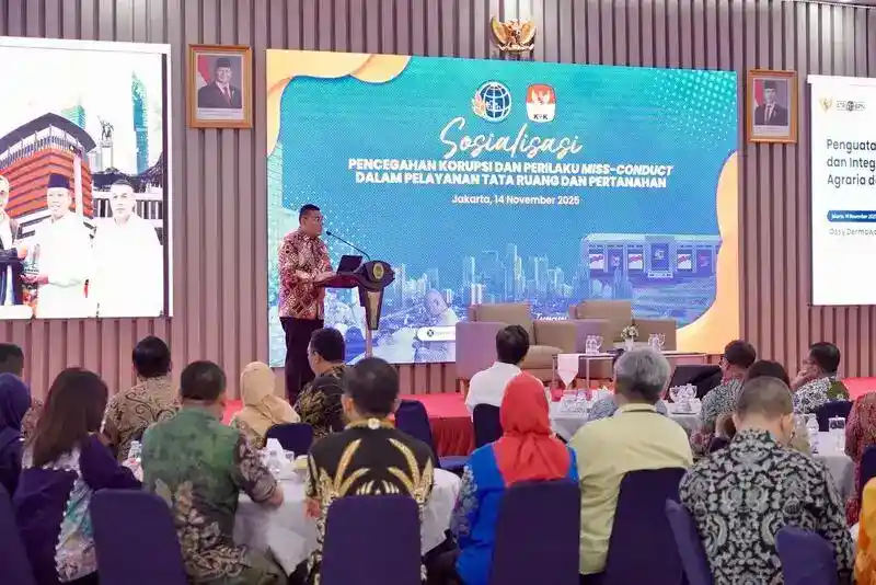 “Layanan pertanahan menyangkut hak ekonomi dan sosial masyarakat. Karena itu setiap proses harus jelas, terukur dan bebas dari penyimpangan,” ujar Wamen ATR/Waka BPN saat membuka Sosialisasi Pencegahan Korupsi dan Perilaku Miss-conduct yang diselenggarakan Kementerian ATR/BPN bersama KPK), Jumat (14/11/2025) di Jakarta.