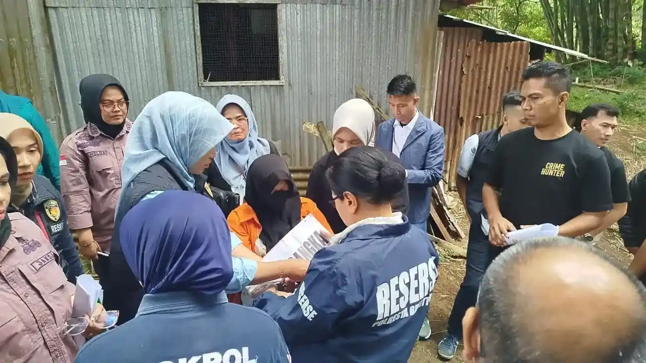 BUKITTINGGI, HARIANHALUAN.ID – Rekonstruksi kasus pembunuhan bayi yang sempat menggemparkan warga Bukittinggi digelar Polresta Bukittinggi di kawasan Ngarai Sianok, Kelurahan Bukit Cangang Kayu Ramang, Selasa (18/11).