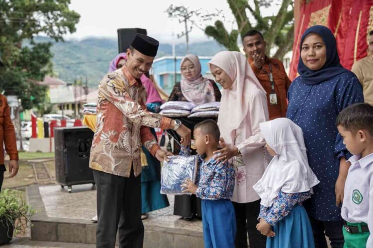 SOLOK SELATAN, HARIANHALUAN.ID — Pemerintah Kabupaten Solok Selatan kembali menyalurkan seragam sekolah gratis bagi murid baru tingkat TK hingga SMP sederajat di Kecamatan Sungai Pagu, Kamis (20/11/2025). Penyerahan dilakukan oleh Wakil Bupati Solok Selatan, Yulian Efi, di Ruang Terbuka Hijau (RTH) Muara Labuh.