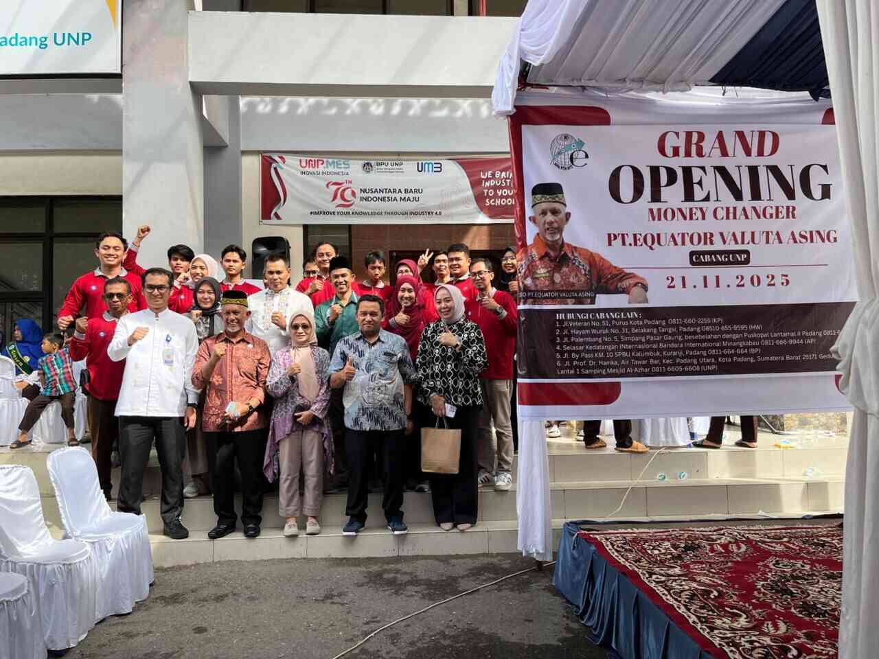 Di tempat yang sama, Rektor UNP yang diwakili Wakil Rektor II, Prof. Dr. Ir. Remon Lapisa, S.T., M.T., M.Sc menyampaikan apresiasinya atas pembukaan cabang baru ini. Menurutnya, kehadiran PT Equator Valuta Asing tidak hanya memberikan kemudahan akses layanan, tetapi juga membuka peluang baru bagi mahasiswa, staf, dan akademisi yang memiliki kebutuhan transaksi valuta asing.