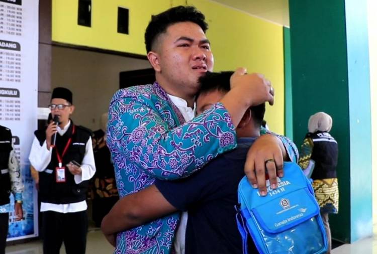 Suasana haru biru tak terbendung saat jemaah haji turun dari kendaraan yang membawa mereka dari kampung halaman. Rasa haru bercampur bahagia menyelimuti keluarga jemaah haji. Dua tahun tertunda, penantian panjang terobati dengan panggilan ke Tanah Suci.
