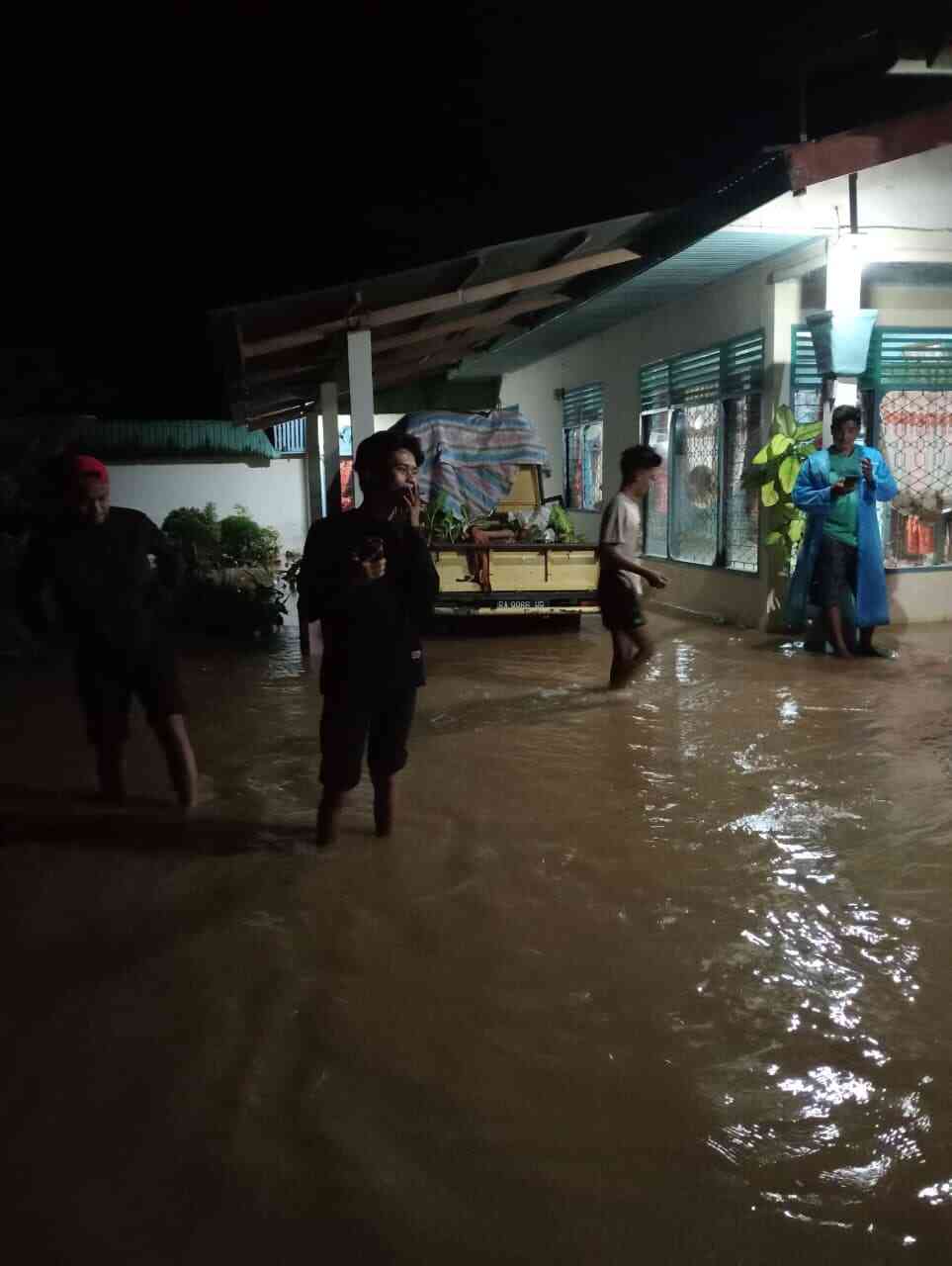 Air mulai naik cepat sejak sekitar pukul 20.00 WIB. Dalam waktu singkat, genangan meluas dan memasuki rumah-rumah warga.