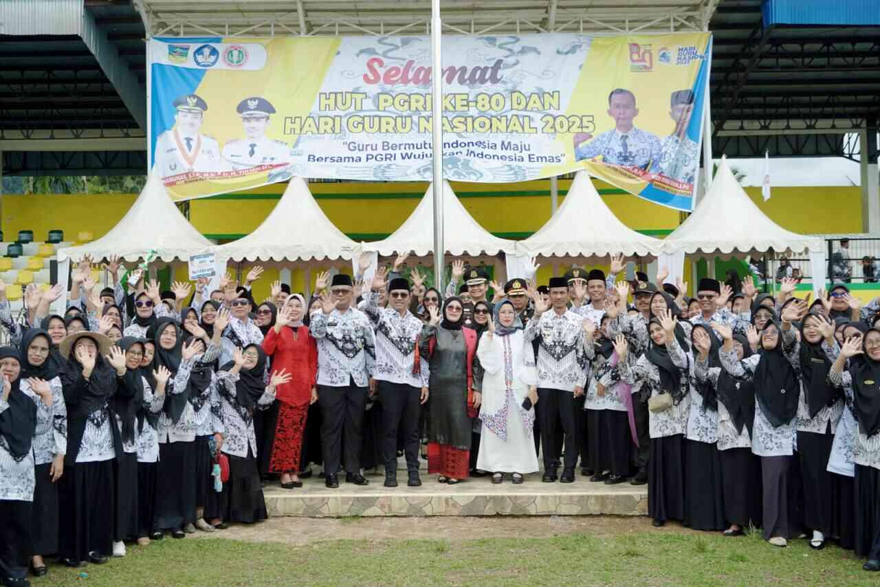SOLOK SELATAN, HARIANHALUAN.ID- Ribuan guru dari seluruh penjuru Kabupaten Solok Selatan memadati GOR Rimbo Tangah, Kecamatan Sangir, dalam peringatan Hari Guru Nasional (HGN) Tahun 2025 tingkat kabupaten, Senin (25/11). Dengan penuh semangat, para pendidik mengikuti rangkaian upacara yang mengusung tema nasional “Guru Hebat, Indonesia Kuat”, sebagai wujud penghormatan terhadap peran guru dalam membangun generasi bangsa.