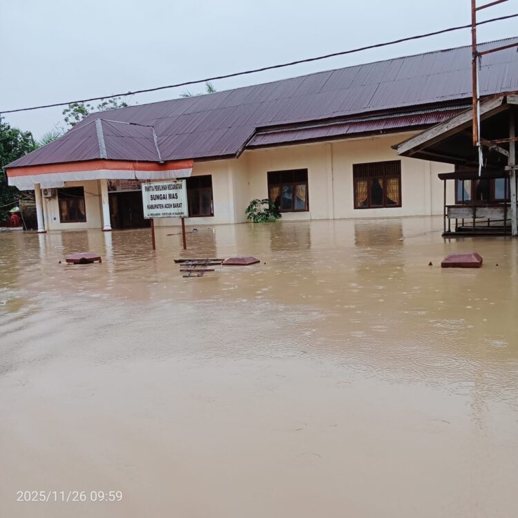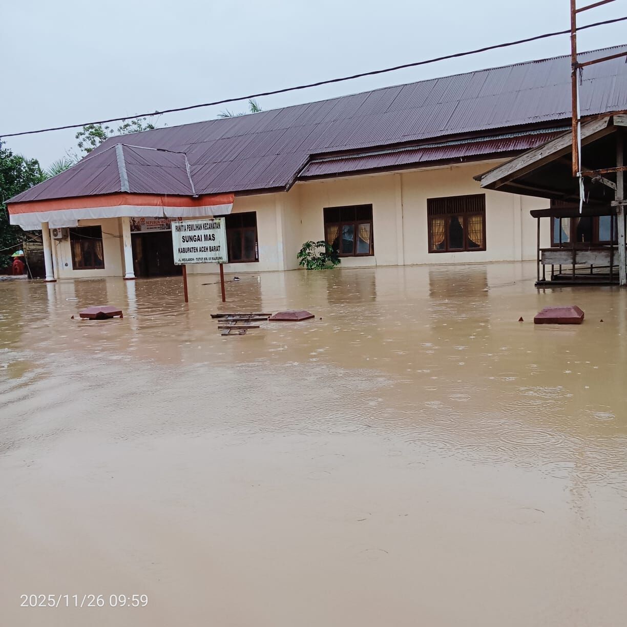 Laporan terkini, DAS Krueng Woyla dan Meureubo masih mengalami peningkatan debit air. Akses dari Gampong Seumantok menuju kecamatan terputus, sementara jalur menuju Pasi Ara masih terendam banjir. Beberapa warga telah mengungsi ke Gampong Kubu Capang. Ketinggian air di Kecamatan Sungai Mas rata-rata mencapai sekitar 130 cm, meskipun variasi ketinggian terjadi antar gampong. Sementara kawasan sekitar Kecamatan Woyla Timur mencatat ketinggian air mendekati satu meter.