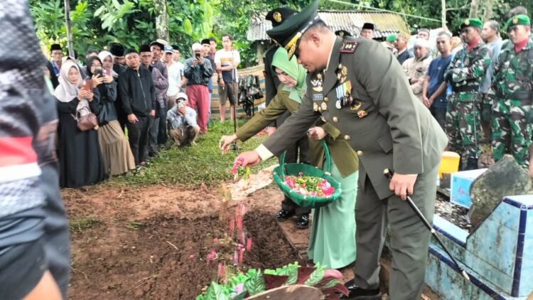 Serangkaian kegiatan upacara pemakaman militer dilaksanakan dengan khidmad, dari prosesi penyerahan jenazah, penurunan jenazah ke dalam liang lahat, pembacaan doa, dan penaburan bunga serta diakhiri dengan penghormatan terakhir kepada arwah almarhum dan dilanjutkan tabur bunga oleh pihak keluarga.(*)
