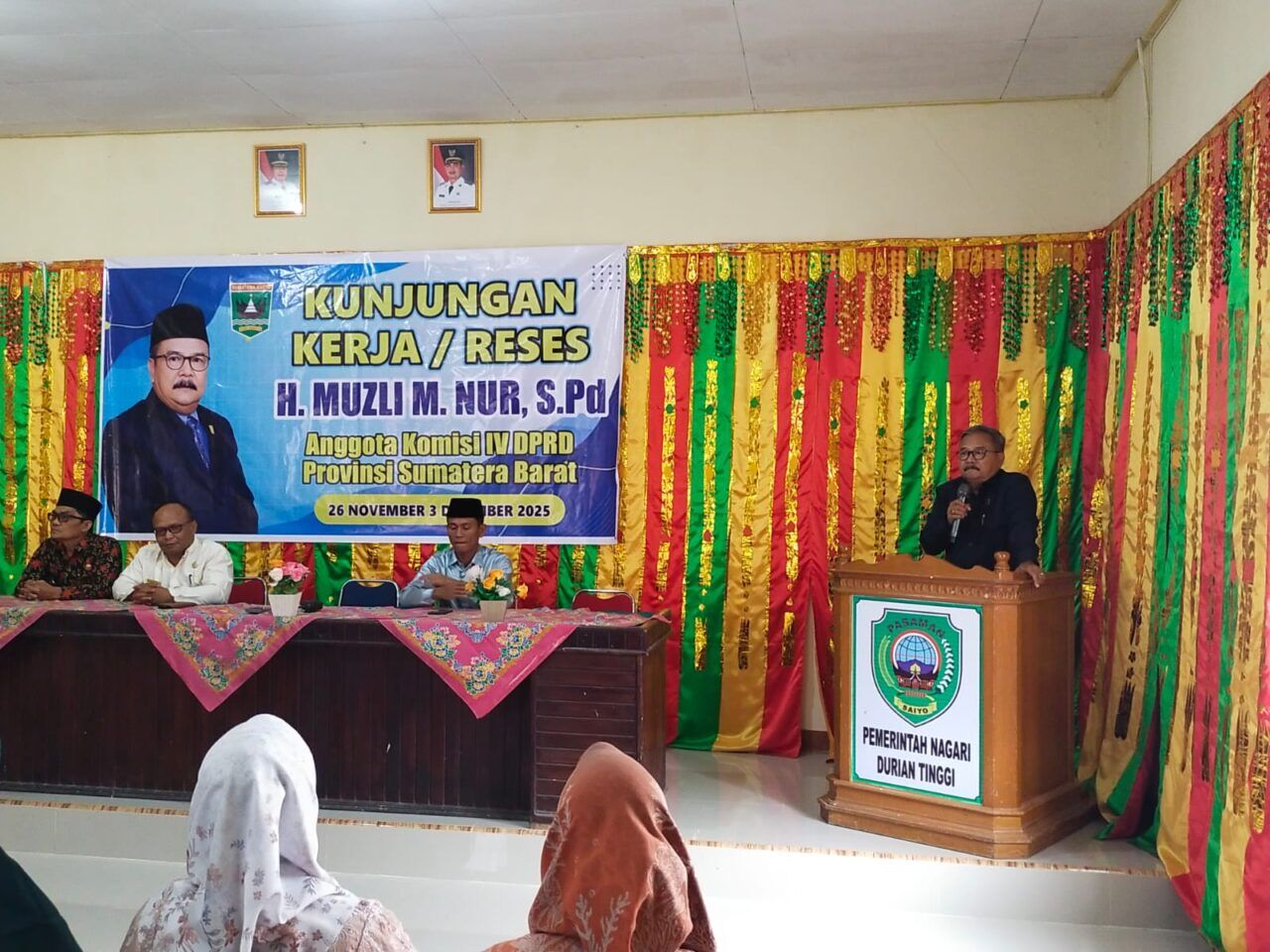 Dalam agenda reses tersebut, Muzli M Nur yang merupakan anggota Komisi IV DPRD Sumbar menyasar tiga nagari sekaligus, yaitu Nagari Durian Tinggi, Nagari Aia Manggih Selatan, dan Nagari Jambak. Kehadiran legislatif di tengah masyarakat ini disambut antusias oleh para tokoh dan warga setempat.