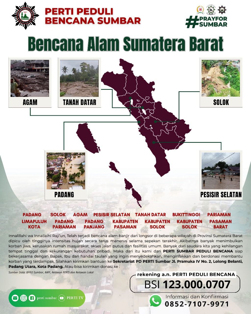 Sekretaris PERTI Sumbar, Muhammad Arif menegaskan bahwa inisiatif ini lahir dari keprihatinan mendalam atas kondisi masyarakat yang terdampak paling parah di sejumlah kabupaten/kota seperti Agam, Tanah Datar, Solok, Pesisir Selatan, Padang, dan daerah lainnya.