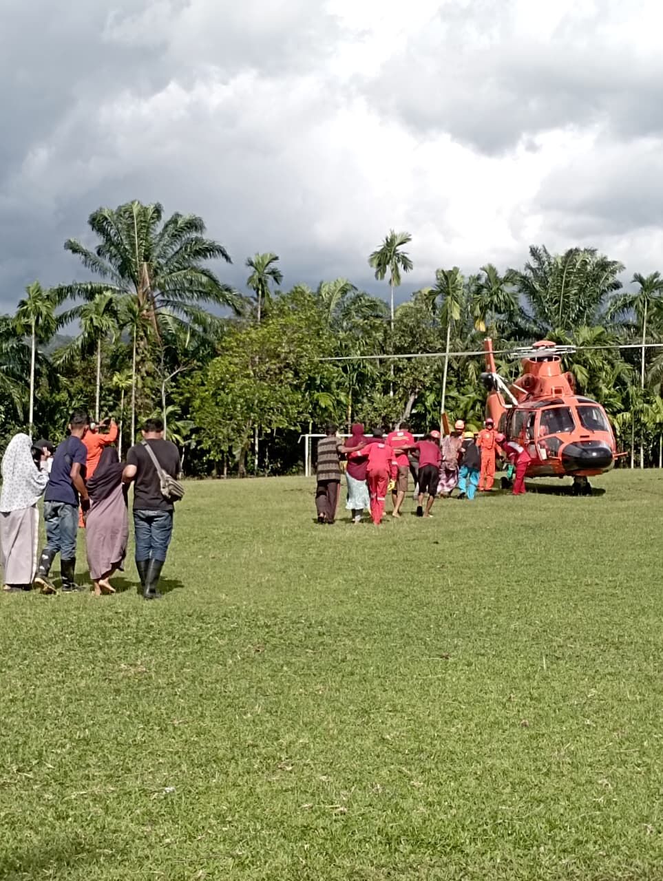 Helikopter dijadwalkan mendarat di GOR Lubuk Basung, sebelum pasien dipindahkan ke ambulans PMI dan dibawa menuju RSUD Lubuk Basung untuk perawatan lanjutan.