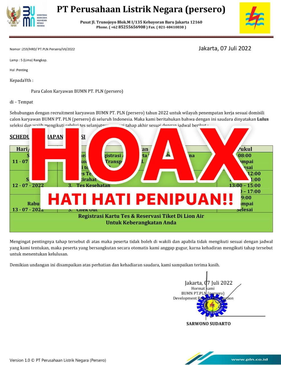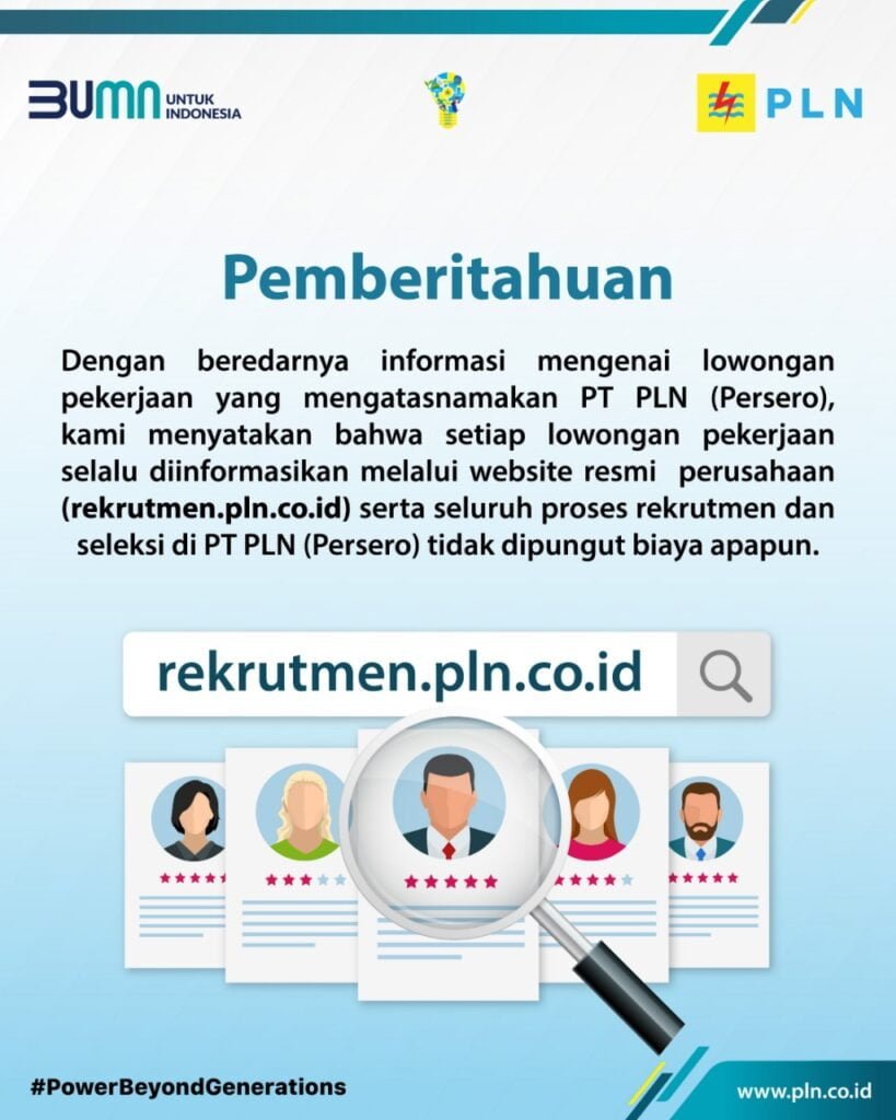 HARIANHALUAN.id – PT PLN (Persero) mengimbau kepada para pelamar kerja untuk berhati-hati terhadap maraknya penipuan terkait rekrutmen karyawan yang mengatasnamakan PLN.
