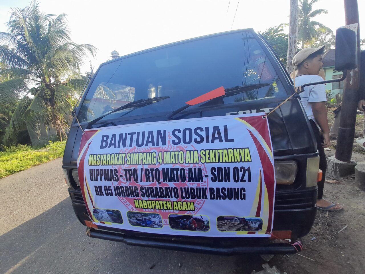 Antusias masyarakat terlihat tinggi. Sejak pukul 07.00 WIB, rombongan bertajuk “Simpang IV Mato Aia Peduli” bergerak dari pos pemuda menuju lokasi penyaluran bantuan di Salareh Aia.