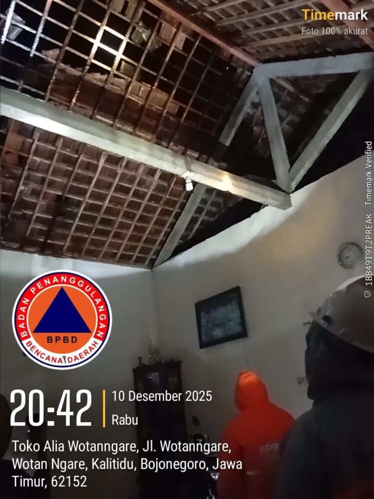 Angin kencang juga melanda wilayah Kabupaten Bojonegoro, Jawa Timur pada Rabu (10/12). Hujan yang disertai angin kencang menyebabkan 42 unit rumah terdampak dengan rincian 23 unit rumah rusak berat, 5 unit rumah rusak sedang, dan 14 unit rumah rusak ringan.