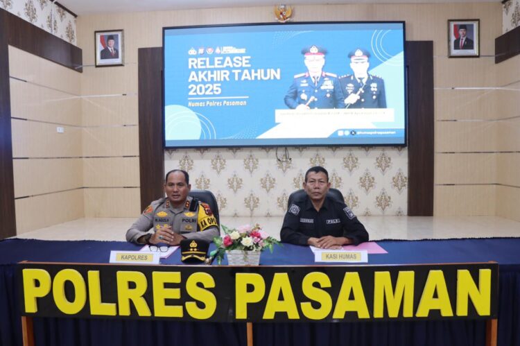 PASAMAN, HARIANHALUAN.ID — Polres Pasaman menggelar press release akhir tahun 2025 yang dipimpin langsung oleh Kapolres Pasaman AKBP Muhammad Agus Hidayat, S.H., S.I.K. Kegiatan tersebut berlangsung di Aula Rupatama Polres Pasaman, Rabu (31/12/2025).