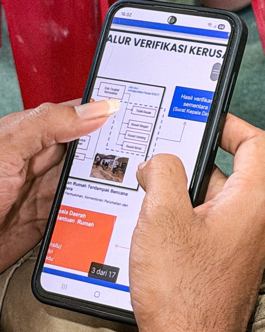 Dalam bimtek tersebut ditegaskan bahwa penilaian kerusakan rumah akan mengacu pada peraturan yang berlaku, yakni rusak ringan dengan tingkat kerusakan 0 – 30 persen, rusak sedang 30 – 70 persen, dan rusak berat di atas 70 persen. Penilaian ini merujuk pada Peraturan Menteri Pekerjaan Umum serta petunjuk pelaksanaan BNPB.