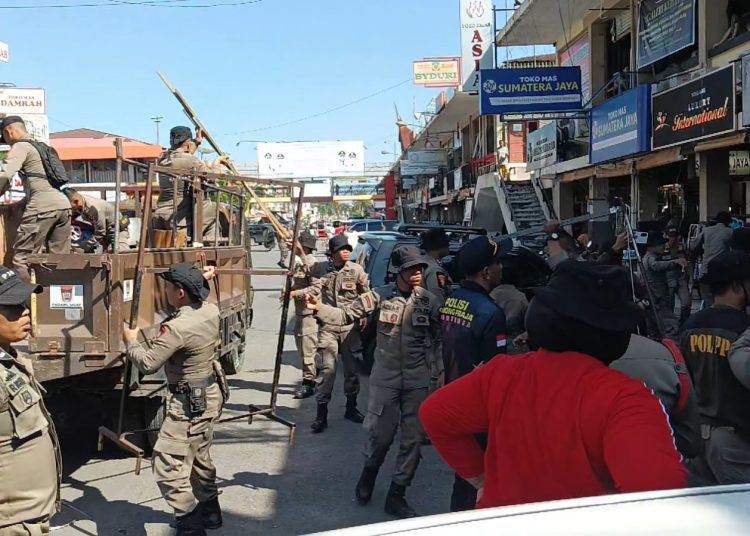 Penertiban PKL yang berjualan di selasar Pasar Raya Padang, Rabu (4/2). IST